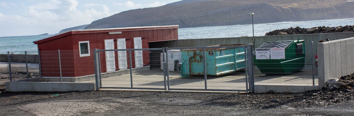 Á bingjuplássinum eru bingjur til tað, ið brennur, til papp, jarn, metal og elektronikk.